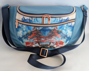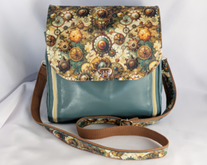 Leather Steampunk Map and Gear Print Crossbody Bag